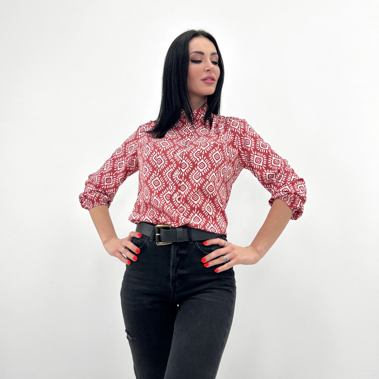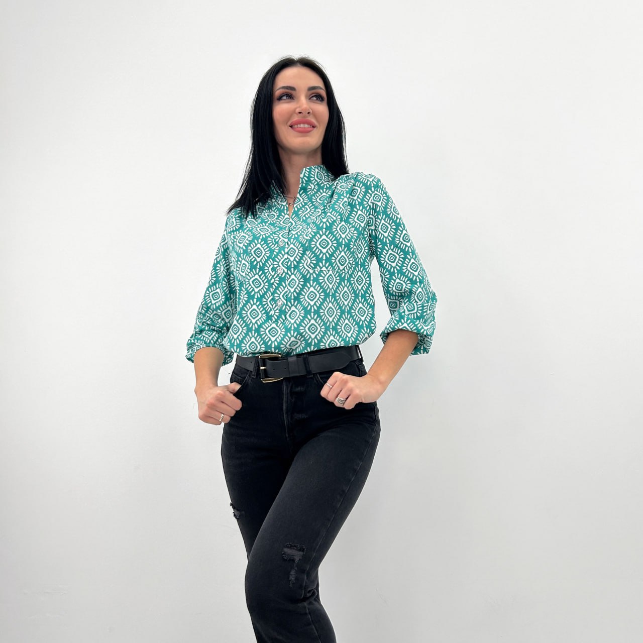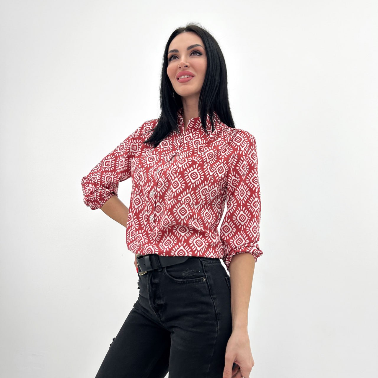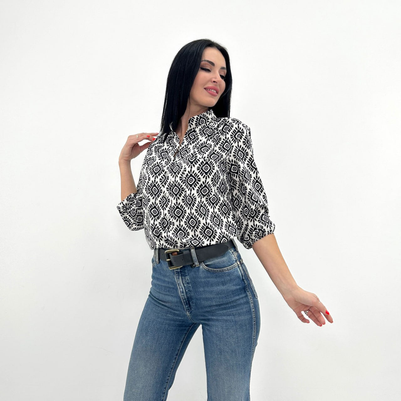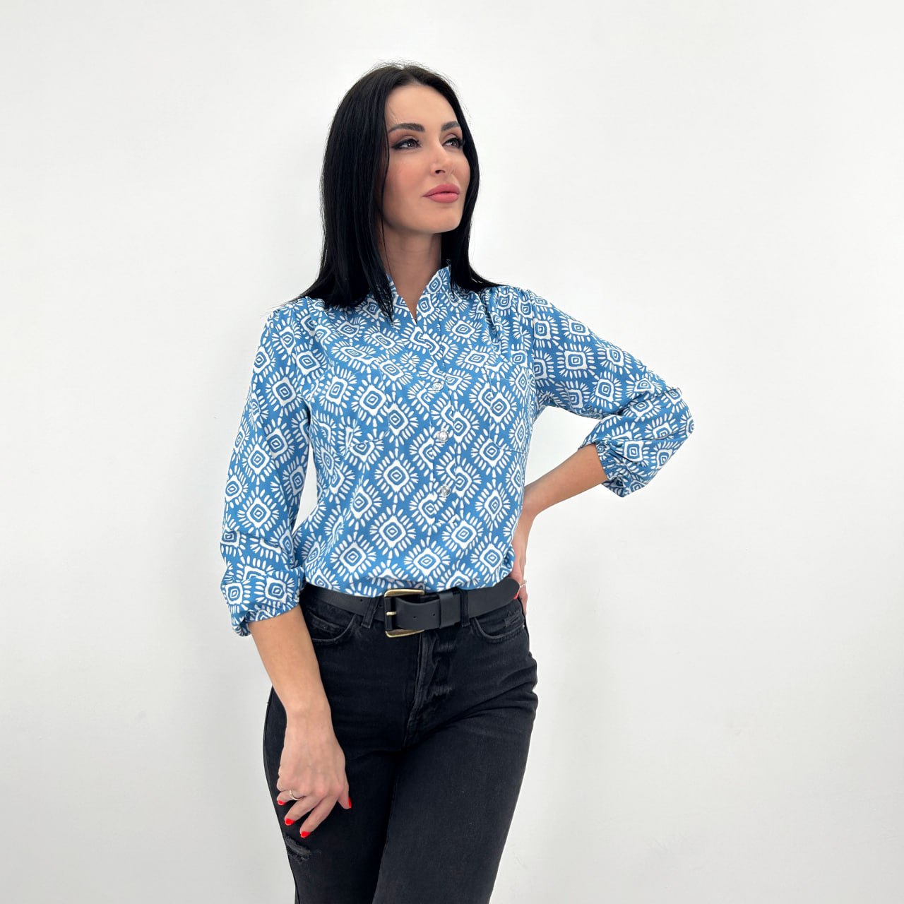 Легкий та повітряний крій блузи "Marocco" забезпечує свободу рухів та підкреслює жіночність силуету. Рукави 3/4 на тонкій гумці не обтяжують передпліччя і додають вишуканості, а комір-стійка відсилає до ділового стилю.