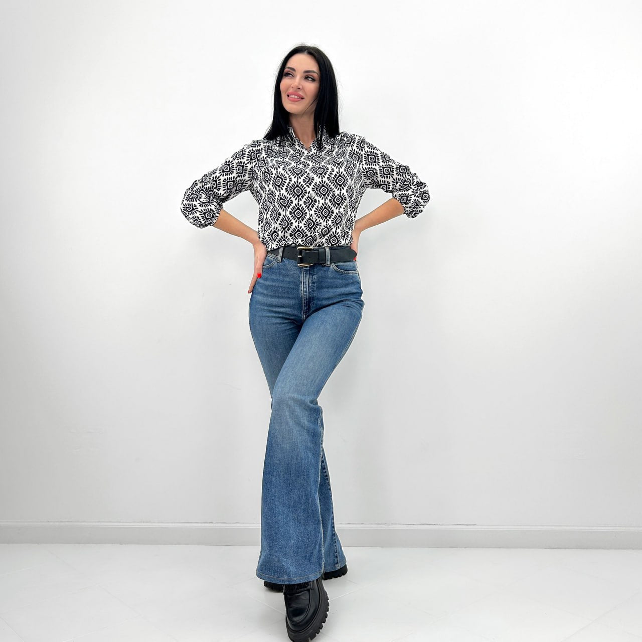 Головна особливість моделі — графічний орнамент. Контраст білої основи та яскравого малюнка, його плавні лінії створюють оптичну ілюзію та роблять образ цікавішим.