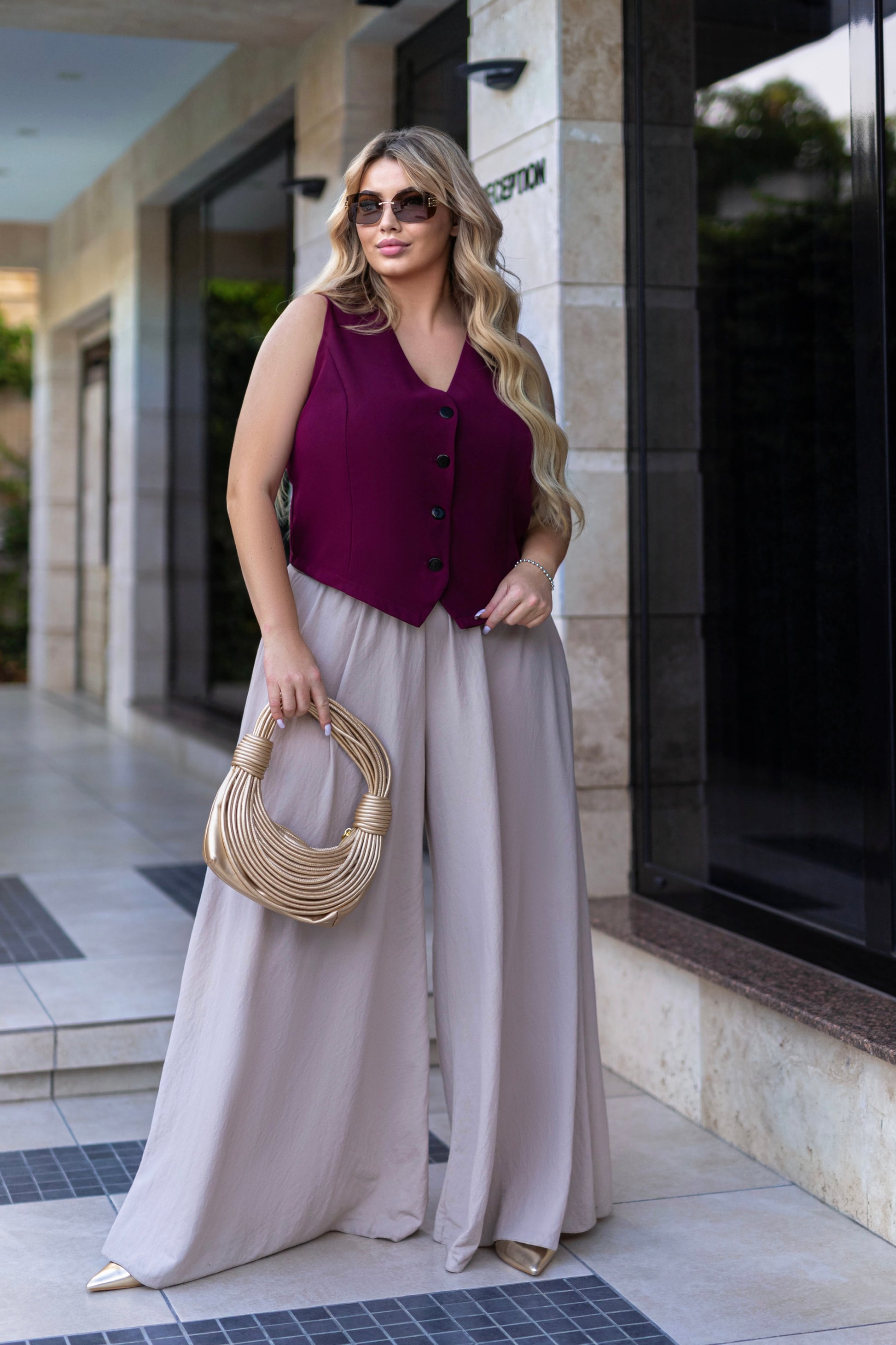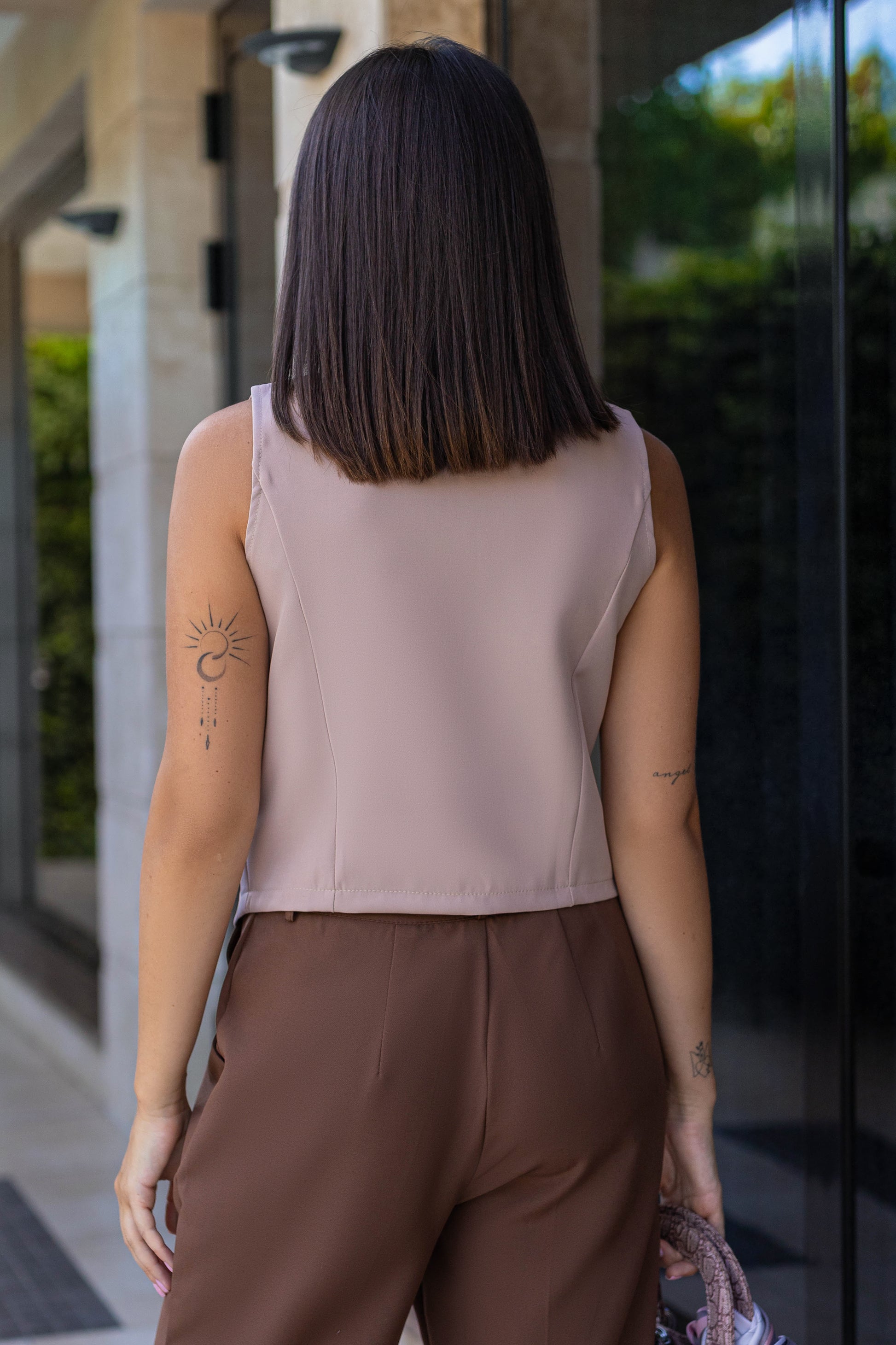 Стильний жилет у класичному стилі виготовлений із креп-костюмки. Тканина досить міцна, але не груба, красиво лягає по фігурі і не обтяжує образ. Вироби з цього матеріалу виглядають досить вигідно та стильно.