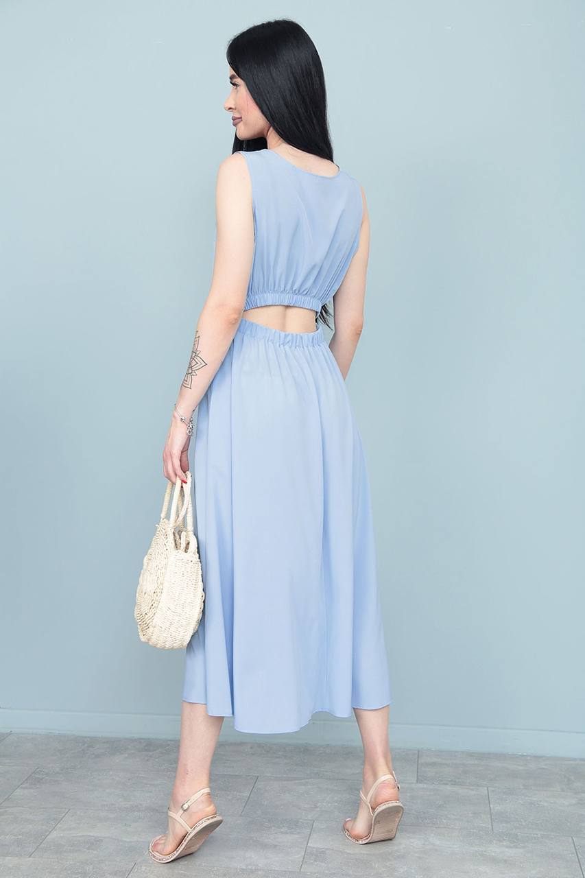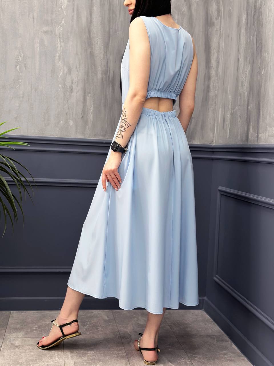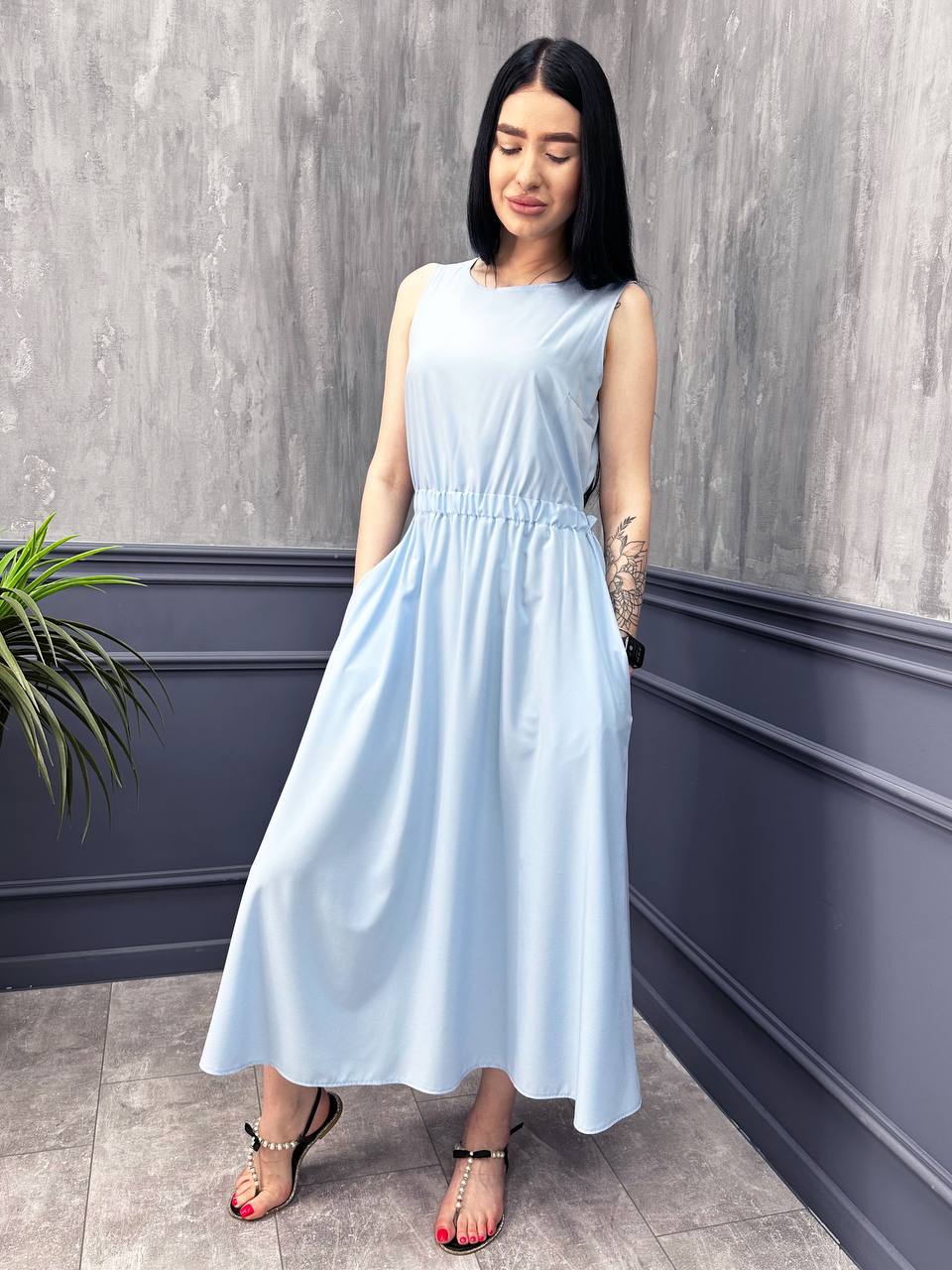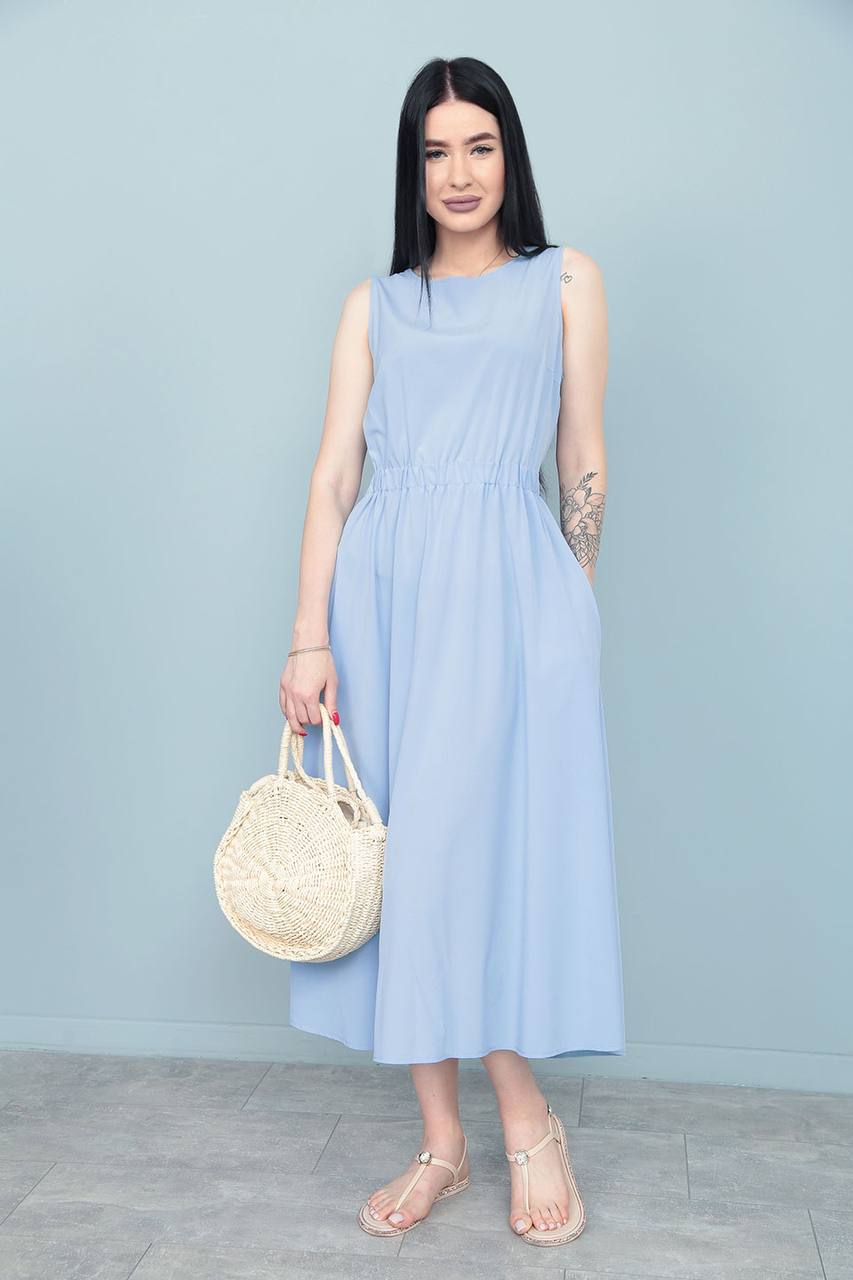Відрізна талія з вшитою резинкою робить фігуру витонченою та пропорційною. У швах спідниці сховані кишені, а це завжди зручно та функціонально. Але головна особливість сарафану – невеликий виріз на спині, це надає образу нотки пікантності та спокусливої привабливості.