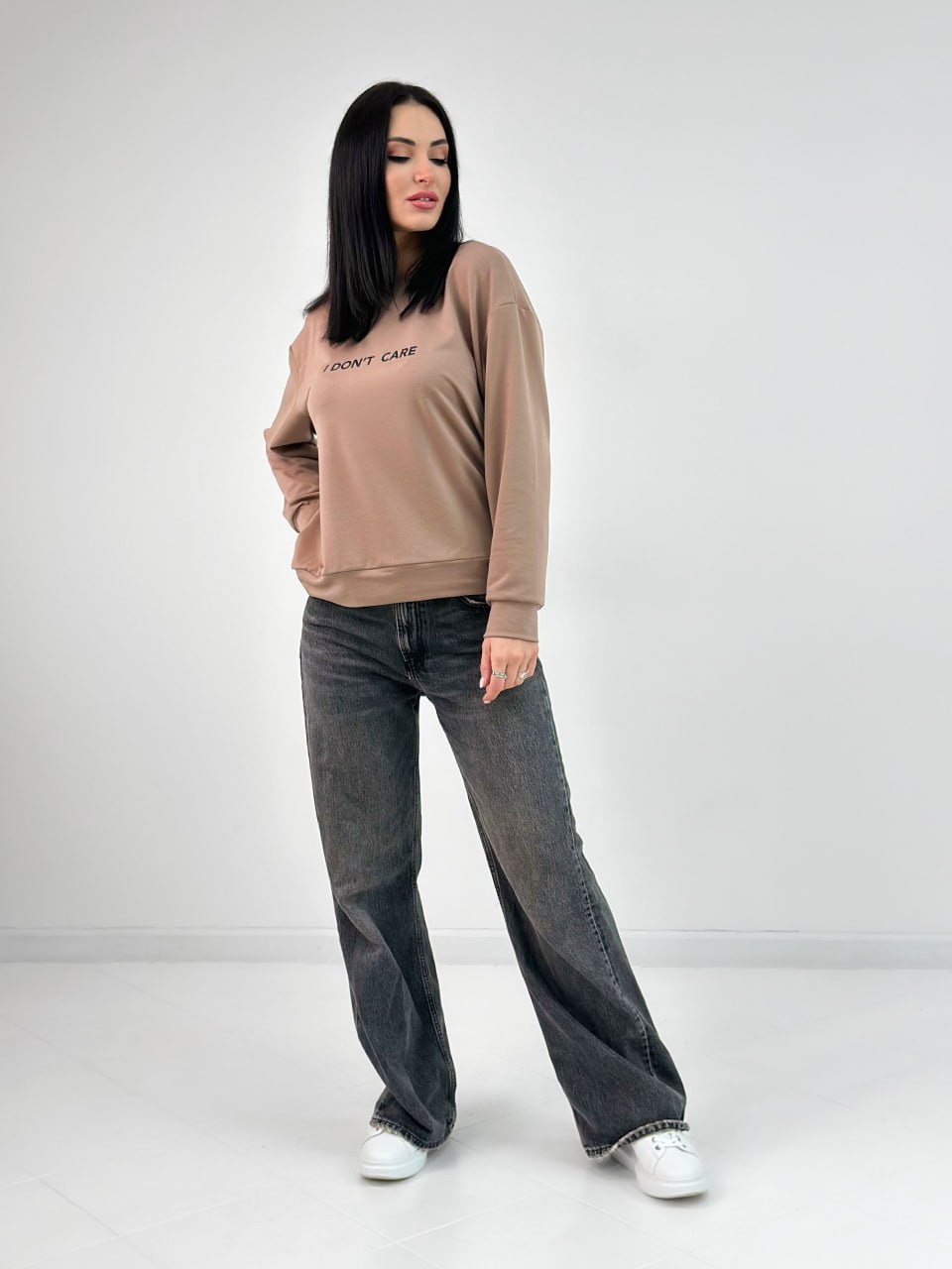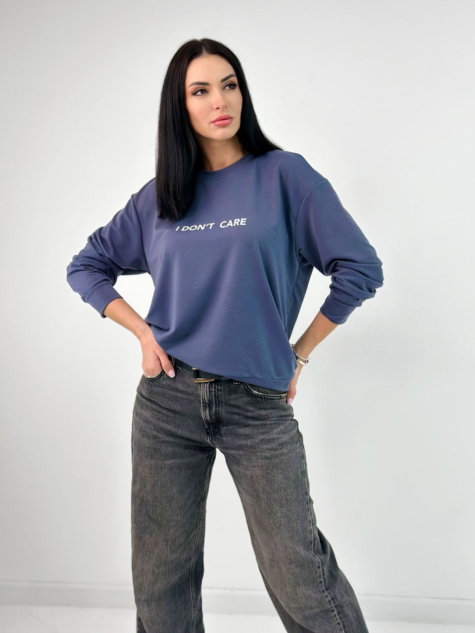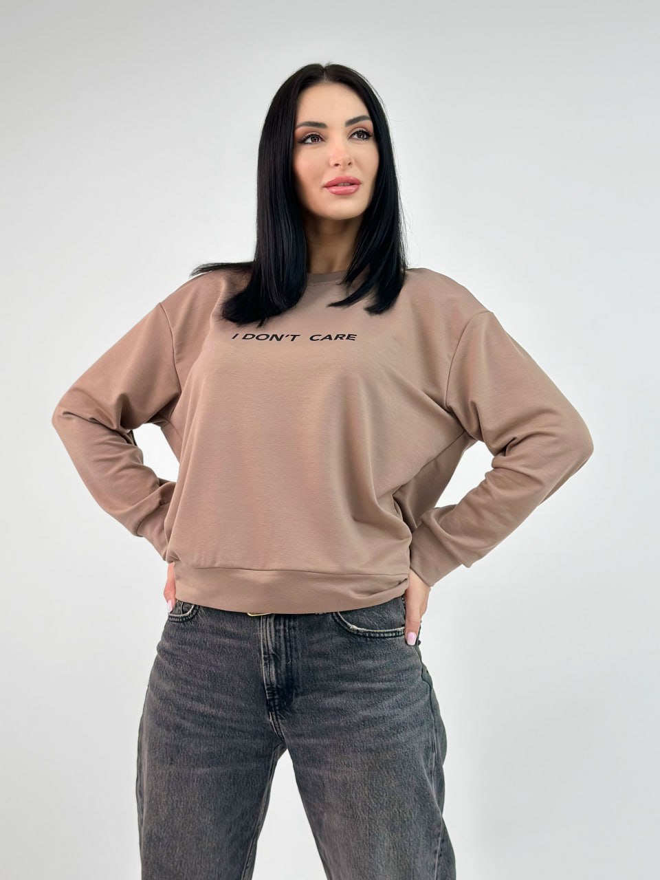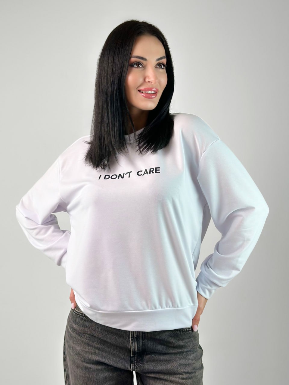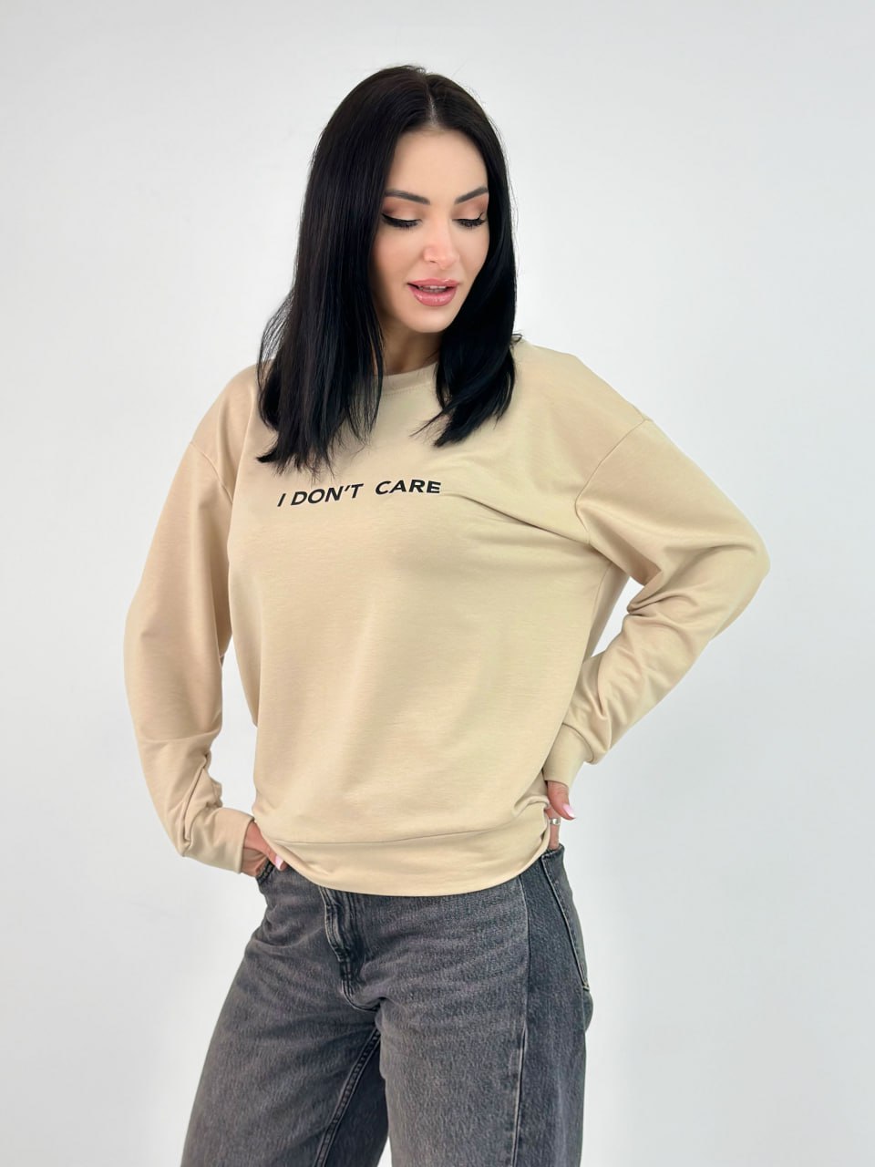 Модель пошита з якісного трикотажу (двонитки), яка приємна в носінні і проста у догляді. Правильний вибір матеріалу та робить світшот "I don't care" зручним для повсякденного використання.