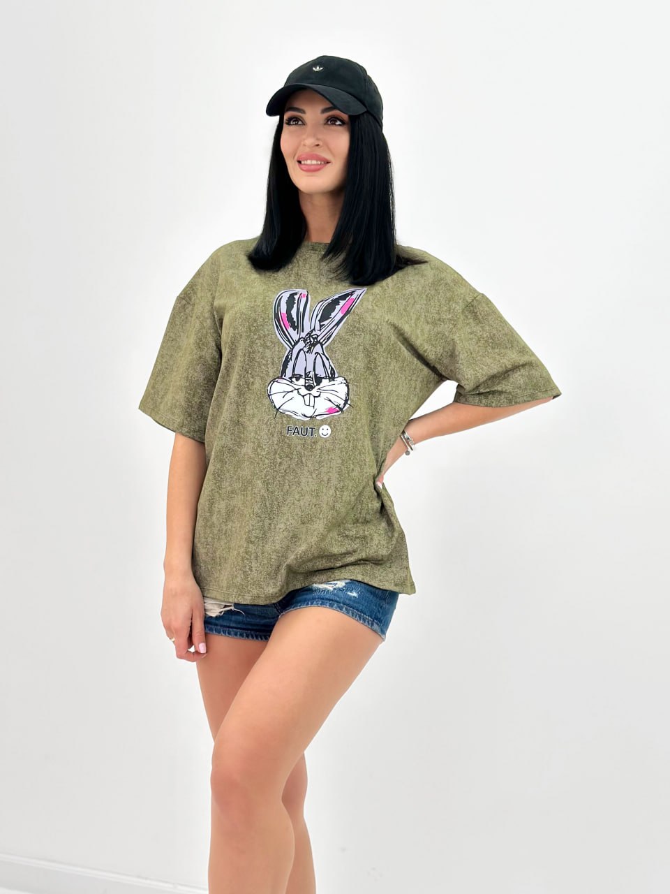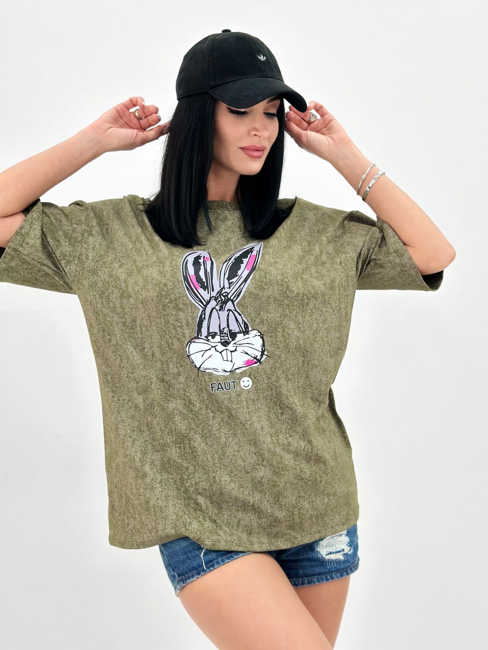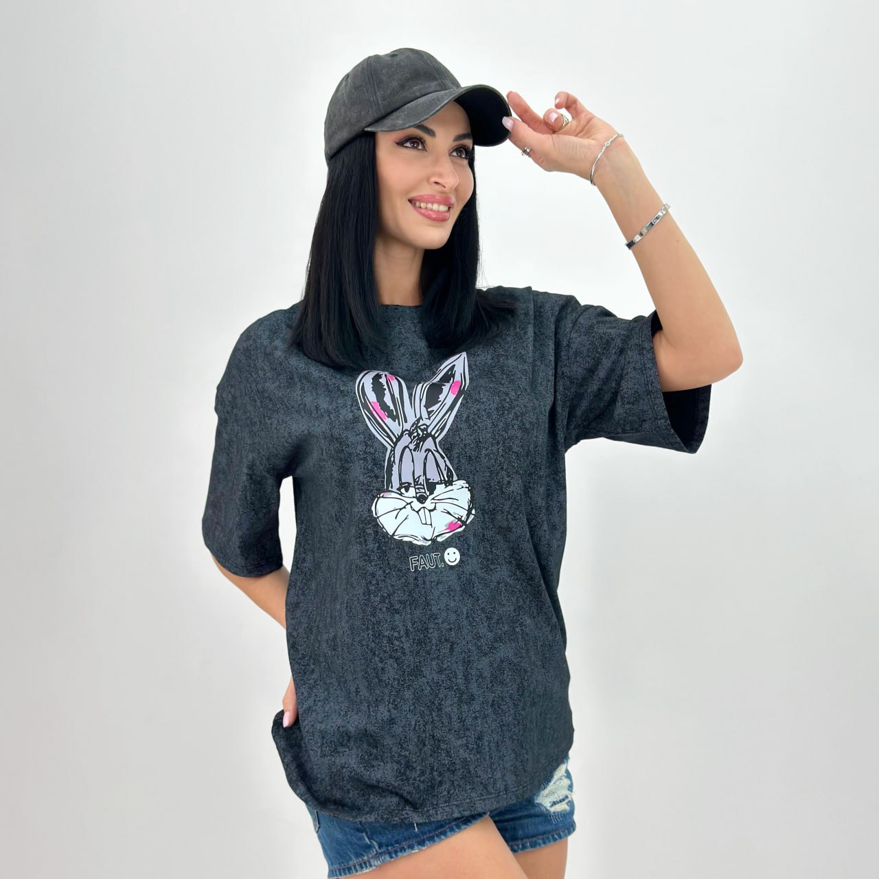 Відкрийте для себе футболку з кроликом Роджером, що поєднує в собі універсальність та легкий, кумедний стиль. Футболка "Roger", відрізняється вільним трендовим силуетом, який ідеально підійде для різних типів фігур. Приємний на дотик матеріал та продуманий фасон забезпечують виняткову зручність протягом усього дня.