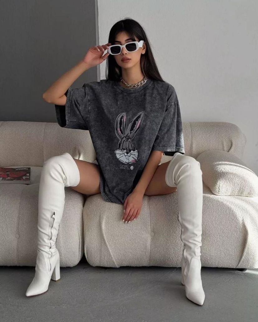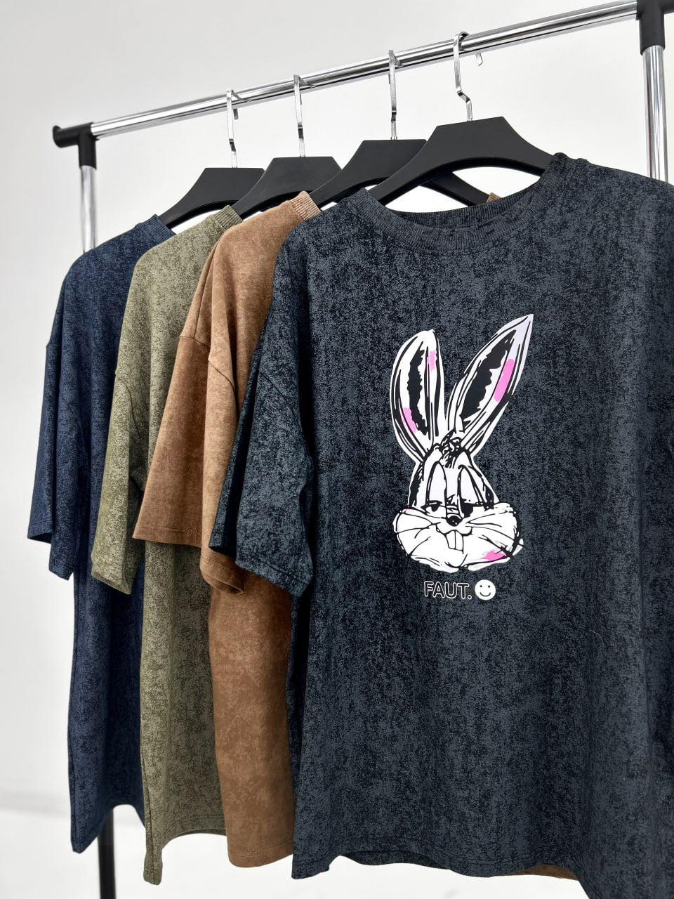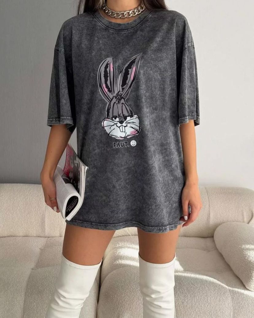 Відкрийте для себе футболку з кроликом Роджером, що поєднує в собі універсальність та легкий, кумедний стиль. Футболка "Roger", відрізняється вільним трендовим силуетом, який ідеально підійде для різних типів фігур. Приємний на дотик матеріал та продуманий фасон забезпечують виняткову зручність протягом усього дня.