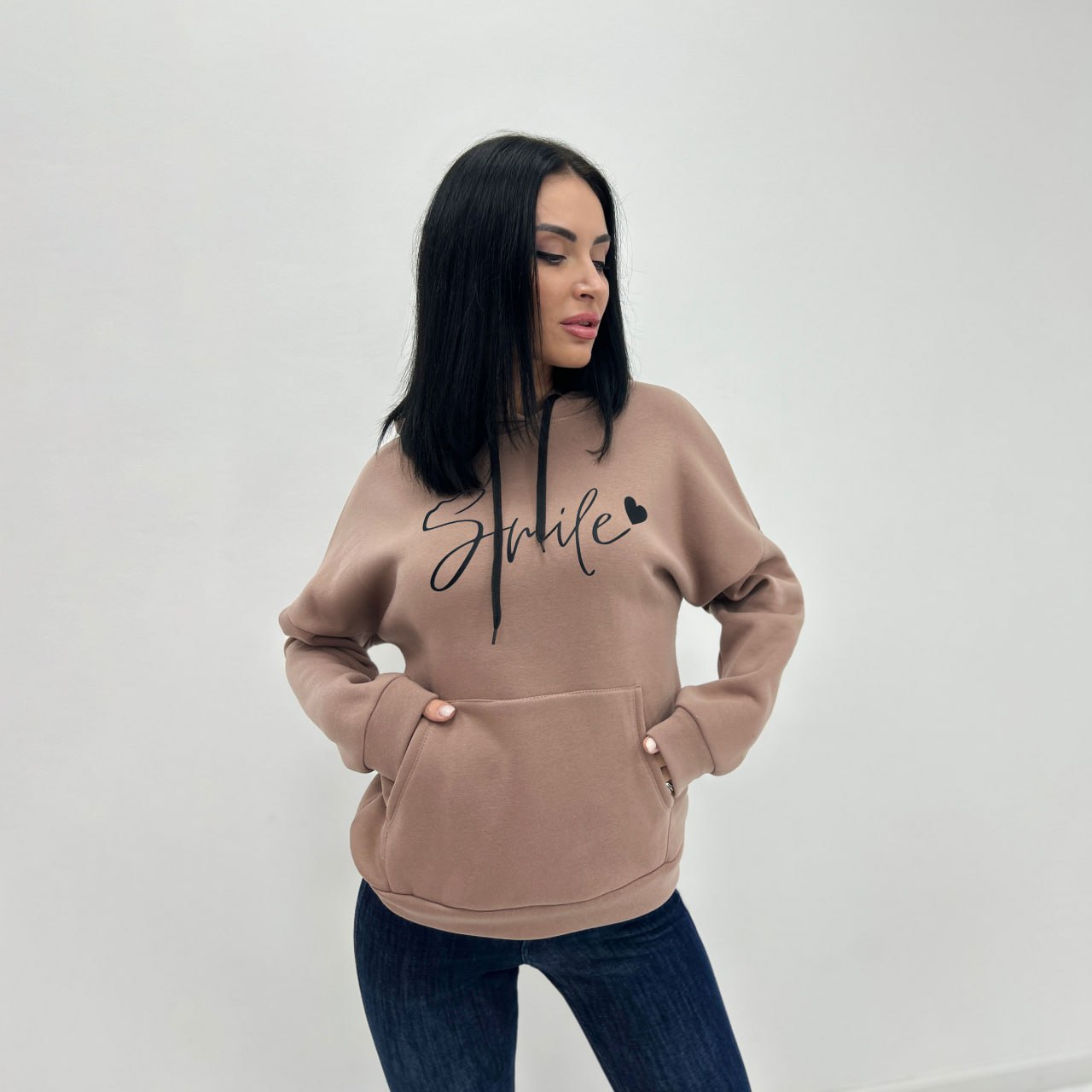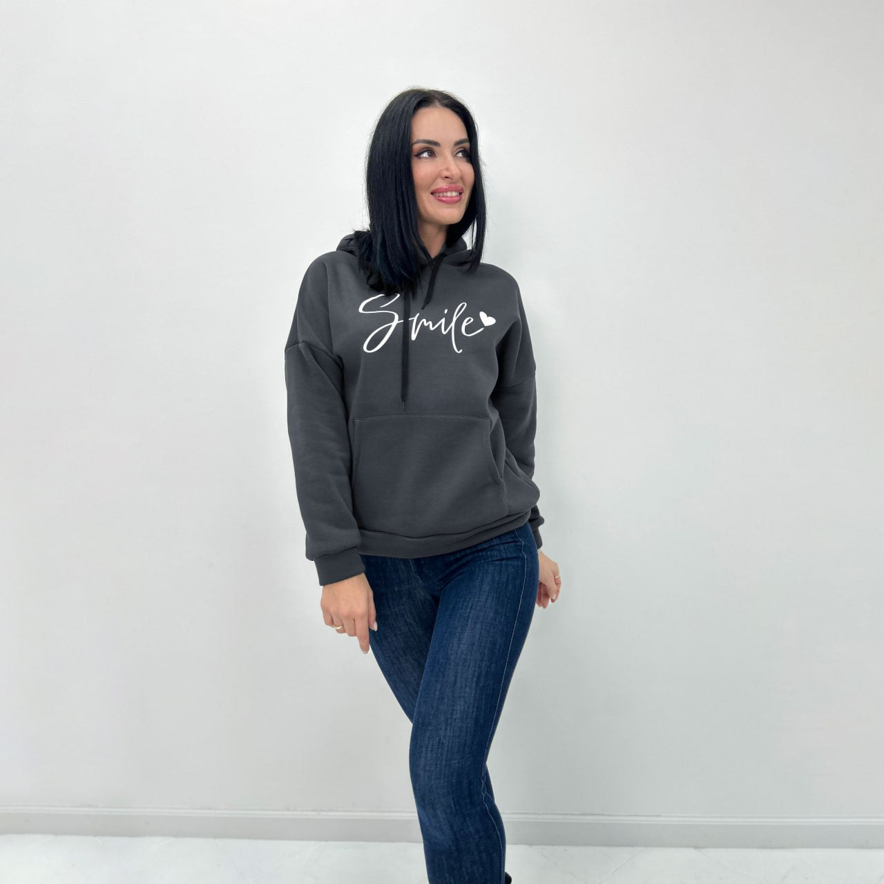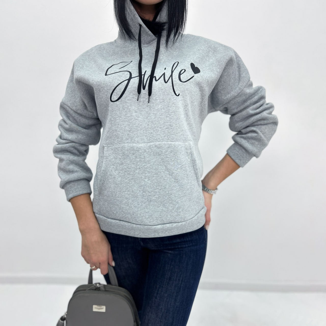 Представляємо худі "Smile", яке стане помітним доповненням до будь-якого асортименту одягу. Цей предмет одягу уособлює практичність та тепло, доповнене ненав'язливим, але веселим принтом Smile. Принт покликаний не лише прикрашати, а й нагадувати про важливість позитивного настрою.
