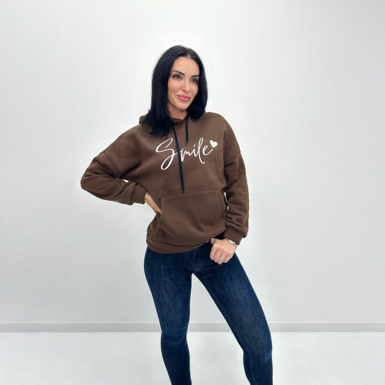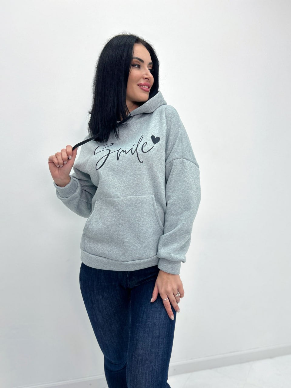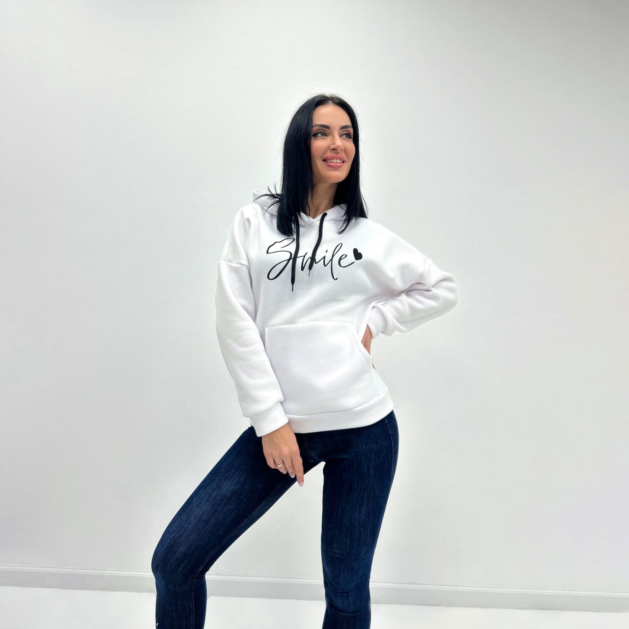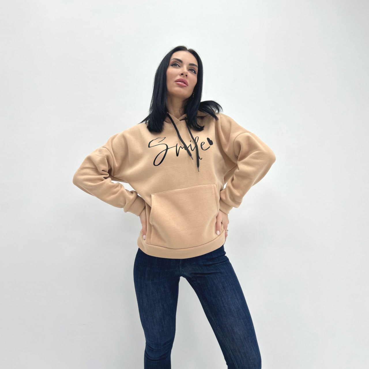 Представляємо худі "Smile", яке стане помітним доповненням до будь-якого асортименту одягу. Цей предмет одягу уособлює практичність та тепло, доповнене ненав'язливим, але веселим принтом Smile. Принт покликаний не лише прикрашати, а й нагадувати про важливість позитивного настрою.