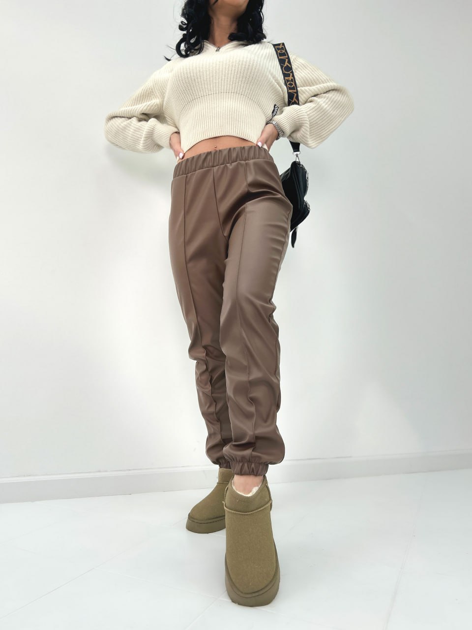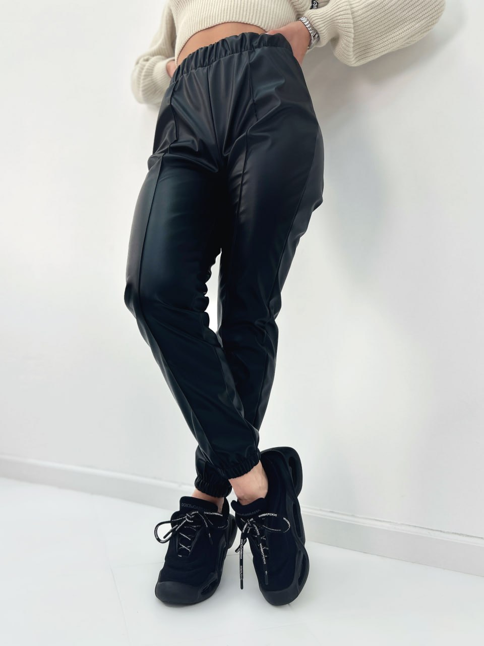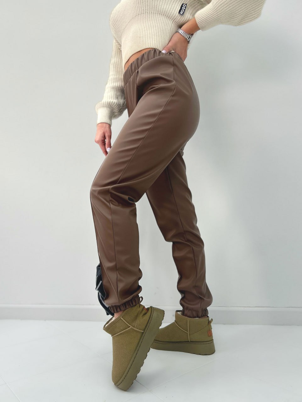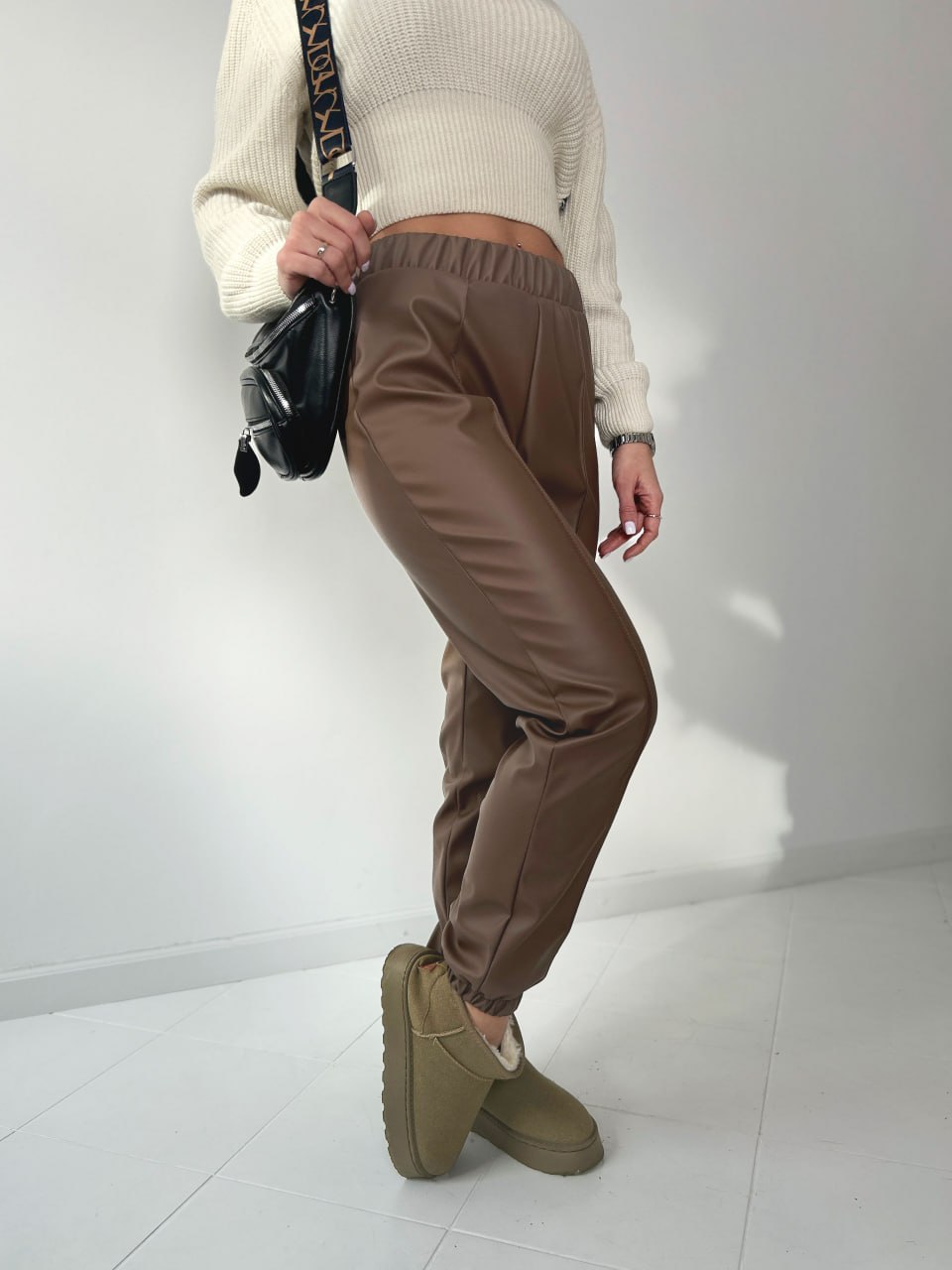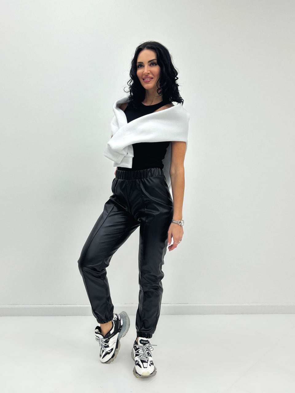 Стильні штани з екошкіри – мастхев жіночого гардеробу. У міжсезоння особливо популярними стають штани з невеликим шаром утеплювача.