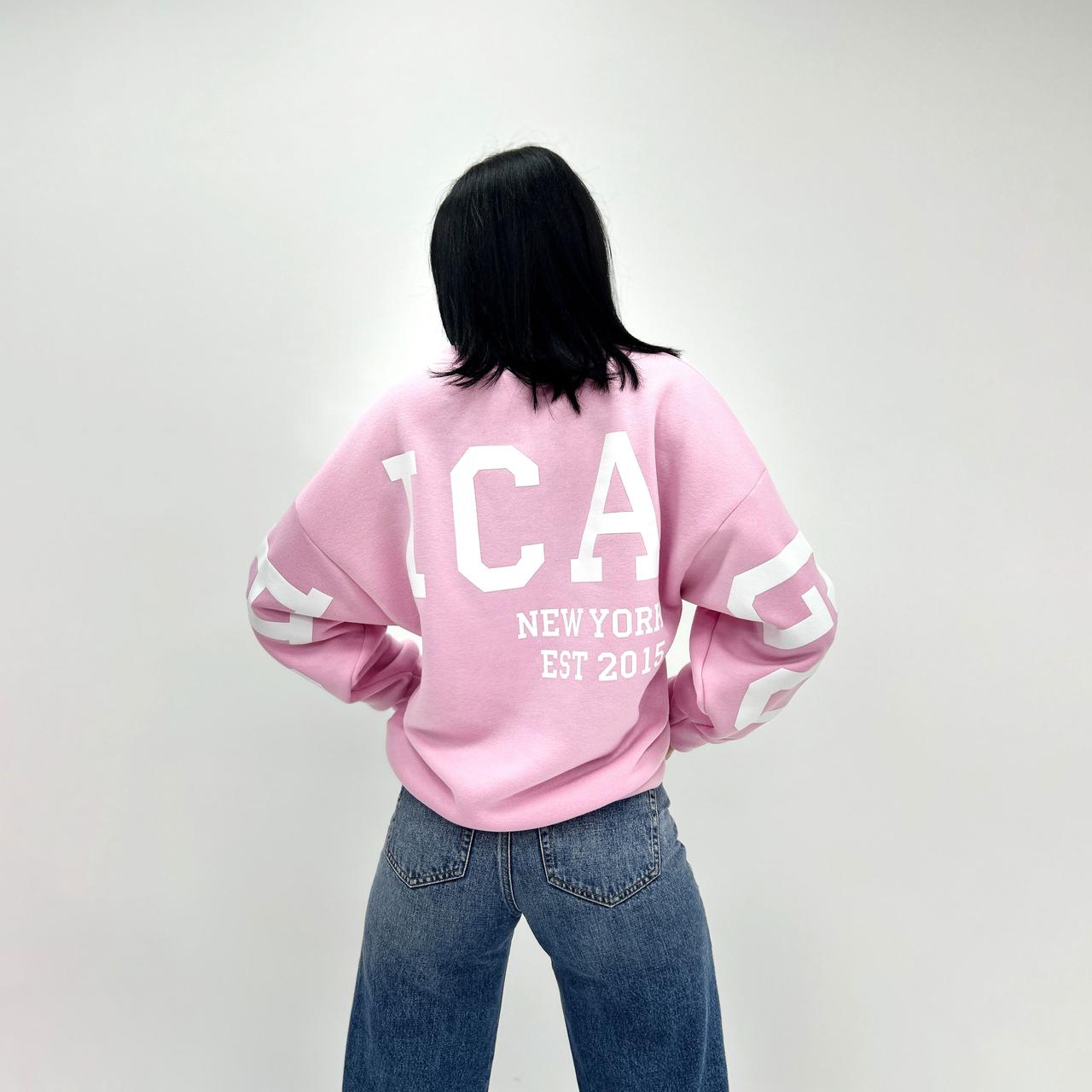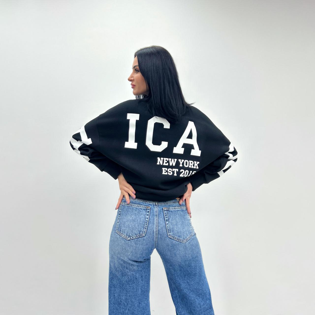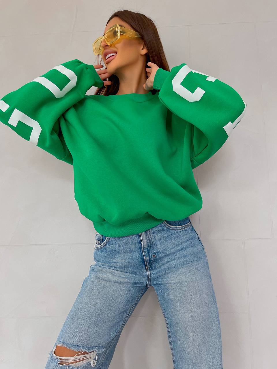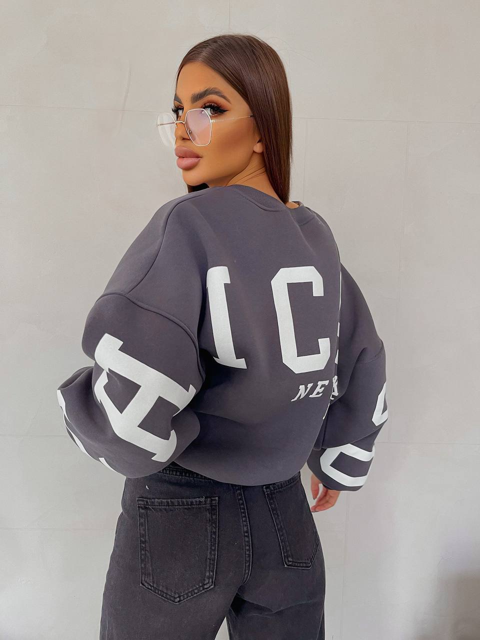 Модель пошита у 6 кольорах. Кожна модниця зможе обрати свої ідеальні відтянки, які будуть відповідати її стилю та настрою. Але родзинка моделі – накатка. Саме крупний напис з крутим шрифтом зробить образ помітним та елегантним.