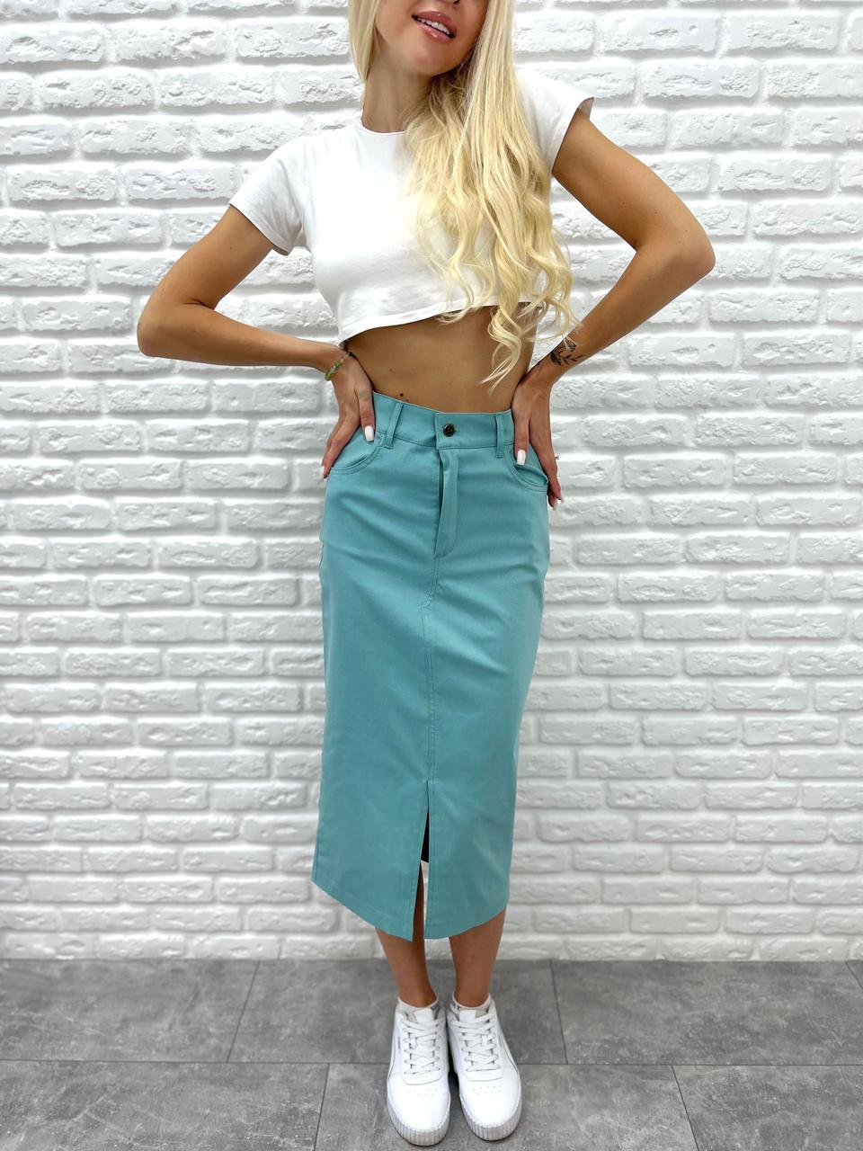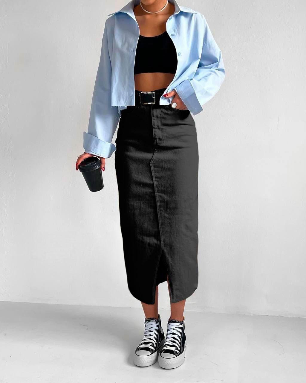 Прямі та елегантні спідниці міді ніколи не виходять з моди. Моделі з розрізом дозволяють зробити образ більш спокусливим, неординарним та вільним.