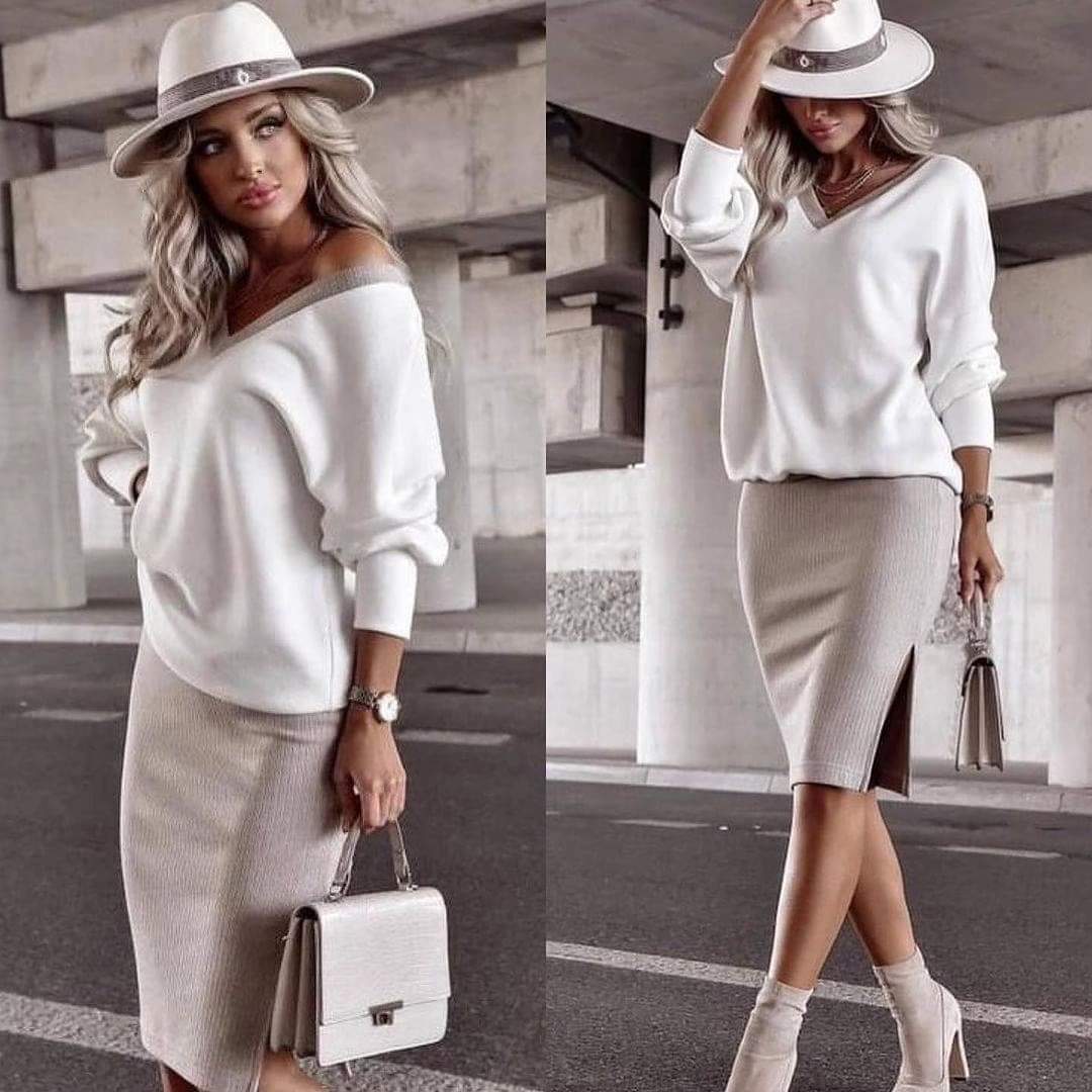 - - верх – пуловер вільного крою з неглибоким V-подібним вирізом;