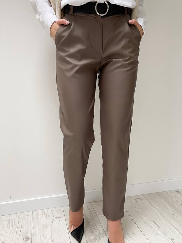 Матова екошкіра дозволить зробити образ більш стриманим та елегантним, але при цьому підкреслить переваги фігури та жіночні вигини. Залежно від випадку штани "Arden" можна поєднувати як з блузкою та туфлями, так і з футболкою та модними кросівками.