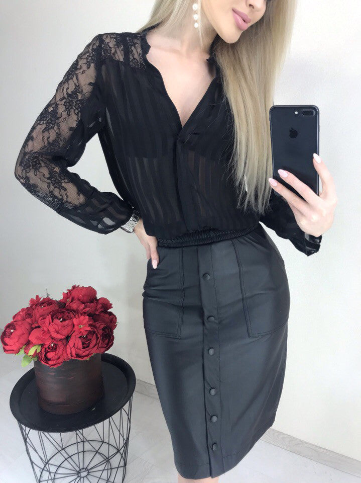 Жіноча модна спідниця з високоякісного шкірозамінника з легкістю знайде своє місце в гардеробі сучасної модниці. Модна довжина міді дозволяє носити спідницю в якості офісного дрес коду. Модель дуже добре поєднується з легкими блузками і об'ємними светрами.