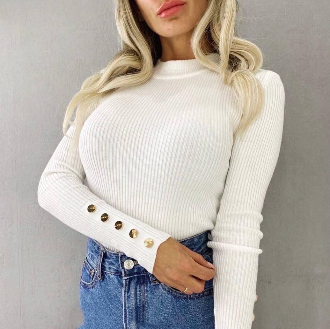Одна з найвдаліших знахідок сезону – гольф з кнопками Lissom з м'якого фактурного трикотажу в рубчик. Завдяки поєднанню простого зручного крою, соковитих базових кольорів та оригінальної фурнітури він успішно впишеться як у строгий діловий образ, так і в модний лук для романтичного вікенду.