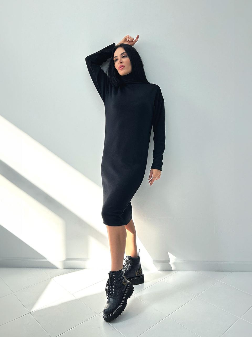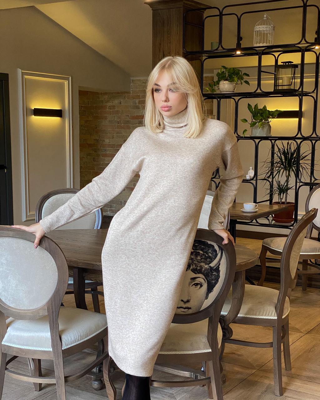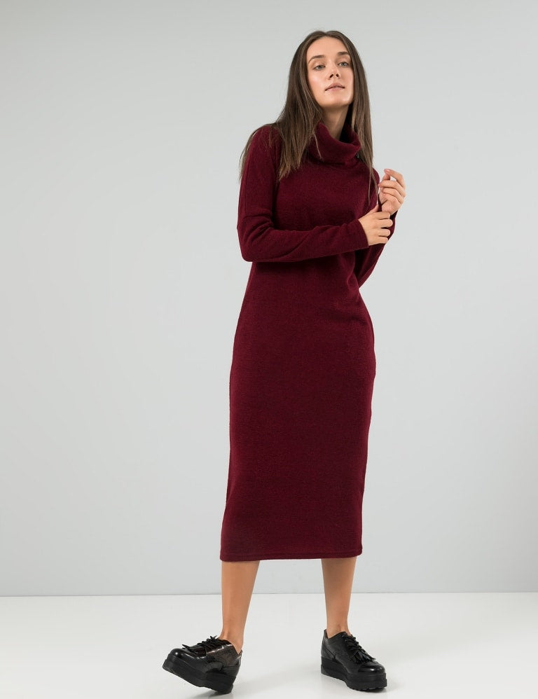 Тепле плаття міді з високою горловиною стане відмінною базою для модних повсякденних образів. Модель вдало поєднується з будь верхнім одягом і взуттям. Сукня гольф міді красиво виглядає з класичної взуттям на підборах, а також з чобітьми на низькому ходу або масивними черевиками. Вільний крій вироби вдало сідає на фігуру будь-якої комплекції, а довжина міді візуально стрункий силует.