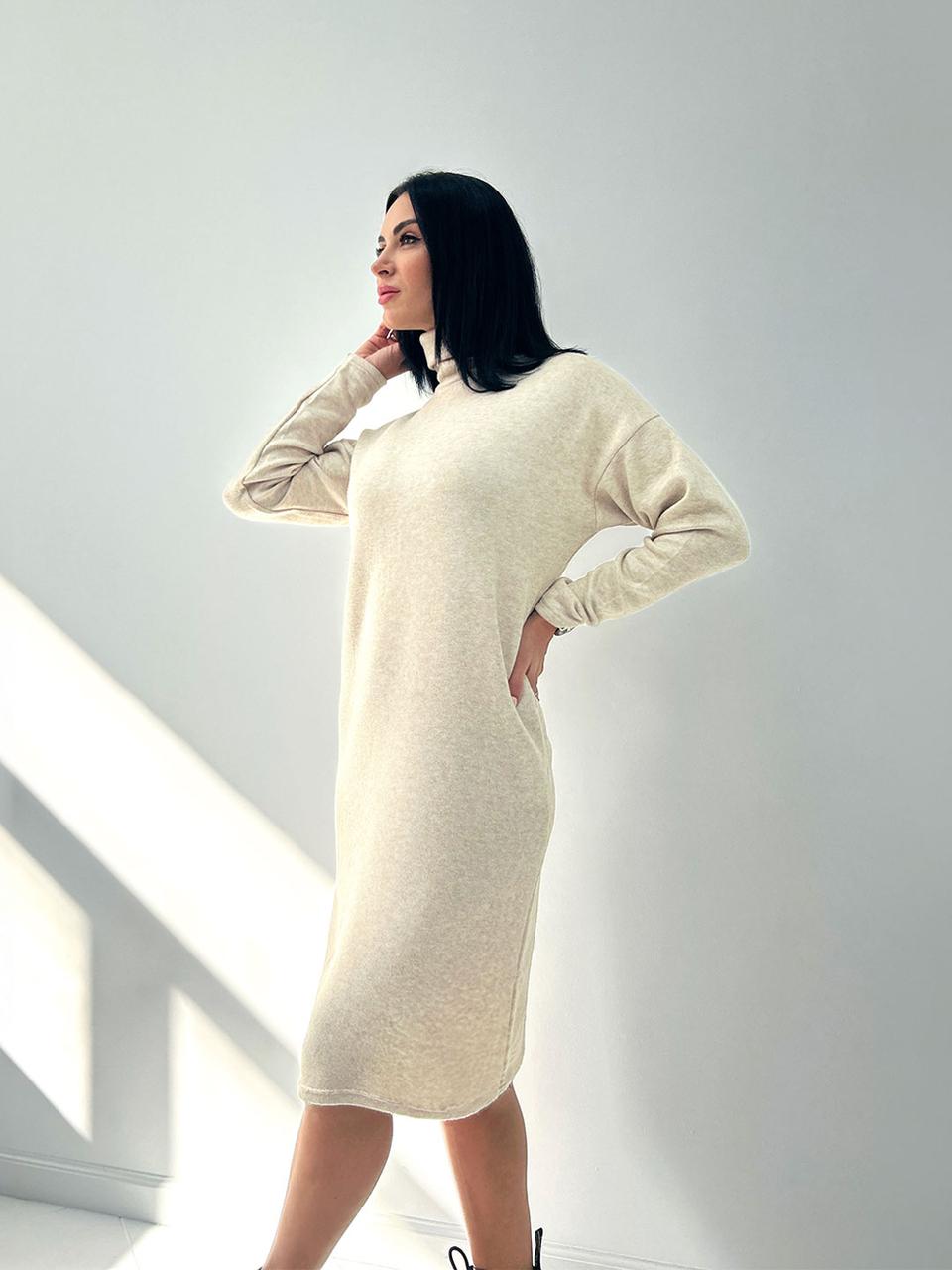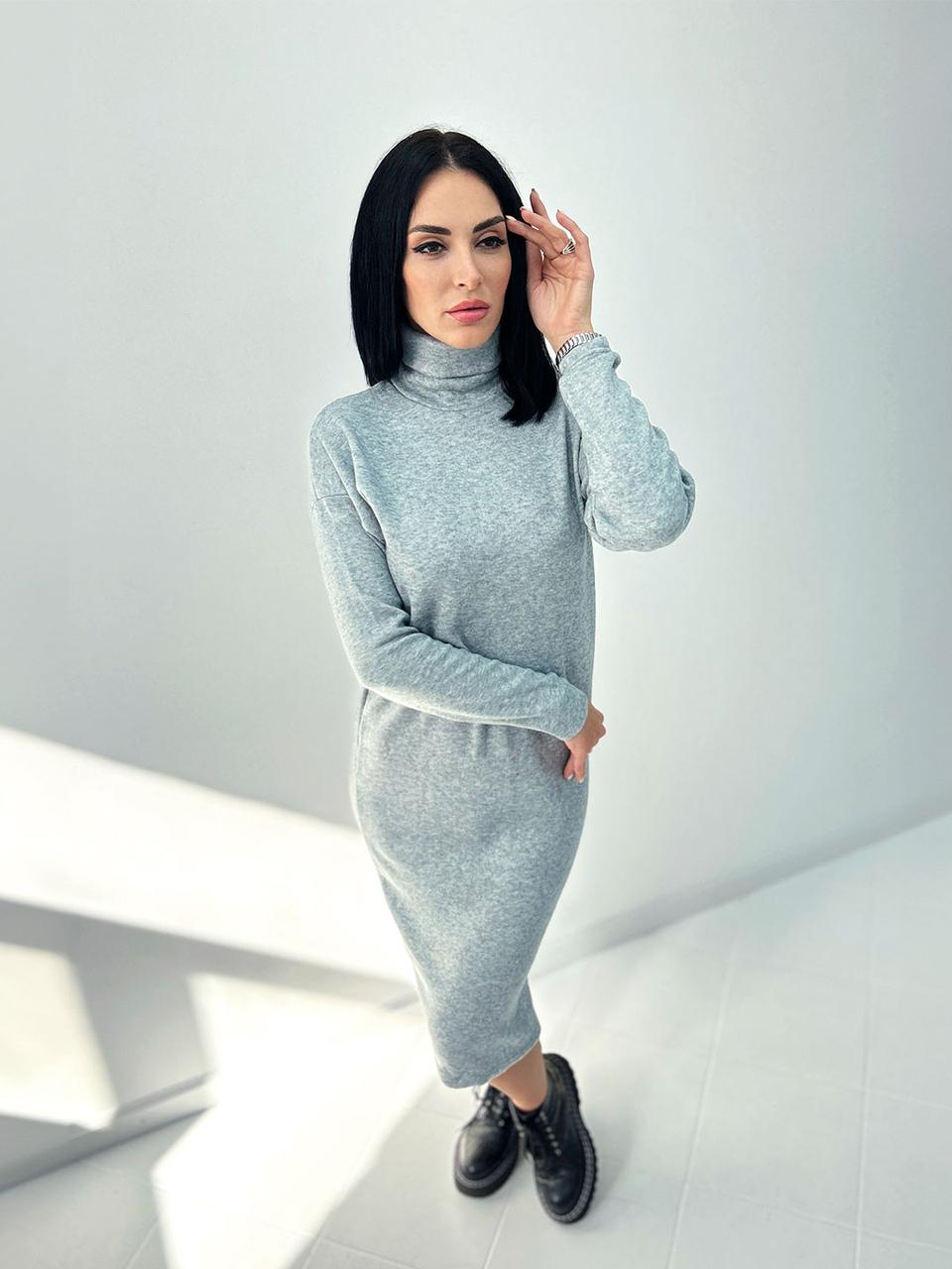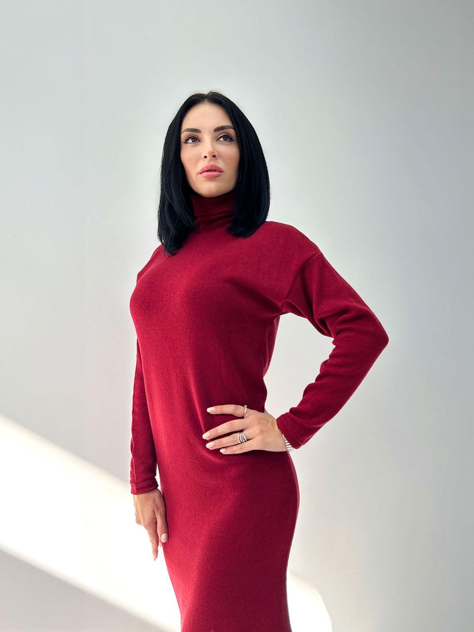 Виготовлено теплу сукню з якісної трикотажної тканини двостороння ангора. Матеріал м'який, щільний, не просвічує і досить приємний на шкірі.