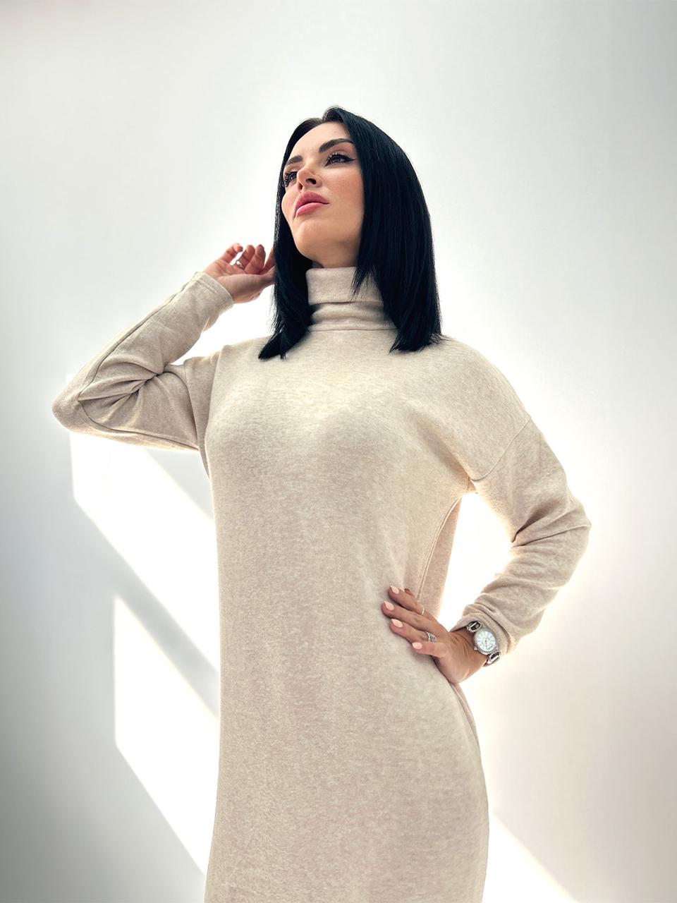 Тепле ангорова сукня міді з високим коміром "Amina"
