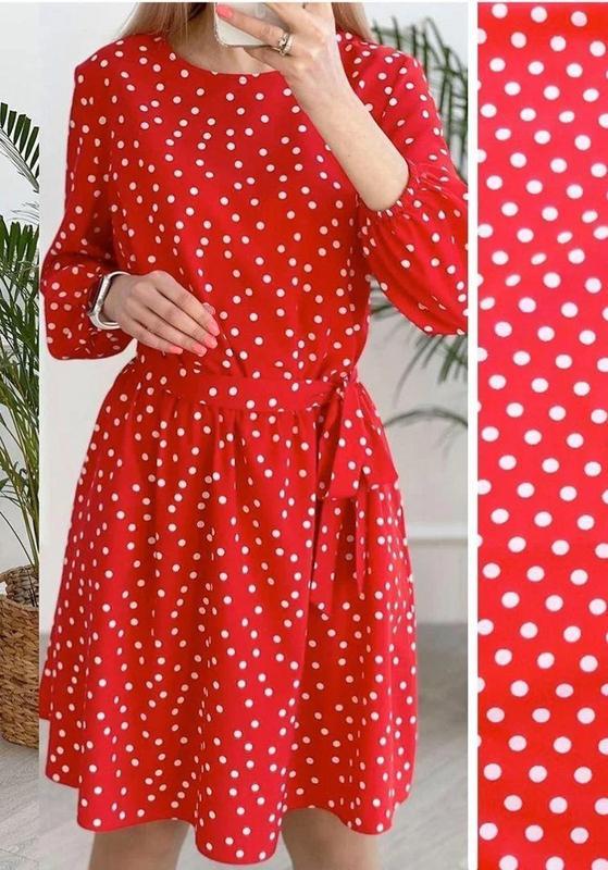 Наше надзвичайно легке платтячко в горошок не тільки змінить звичний образ, а й створить по-справжньому весняний настрій. Модель вільно сідає по фігурі, не облягаючи форми. Завдяки відрізній талії на тонкій резинці силует виглядає дуже жіночно і красиво. Актуальна довжина до коліна надає образу повітряної легкості і дозволяє показати ніжки. Рукави довгі, знизу присборені резинкою. В комплекті до сукні є знімний поясок.