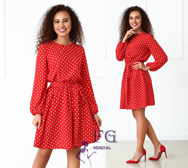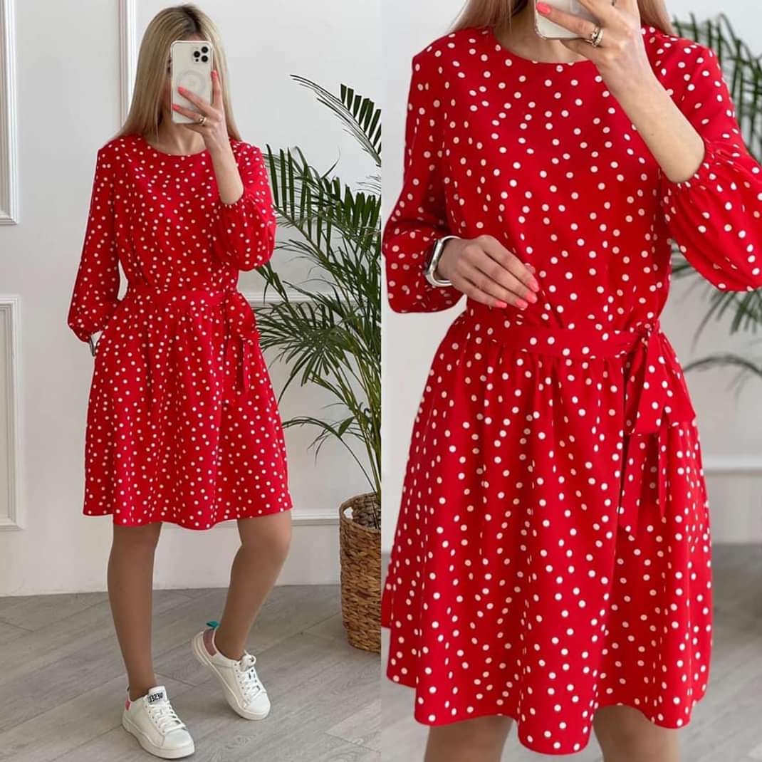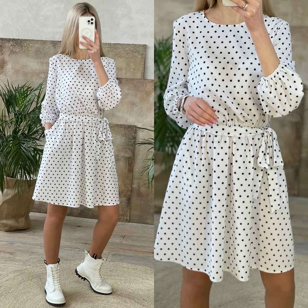 Плаття з довгими рукавами в горошок – це відмінний варіант для святкових та урочистих заходів, романтичних побачень і зустрічей. До того ж, воно добре поєднується з різним одягом і будь-яким взуттям.