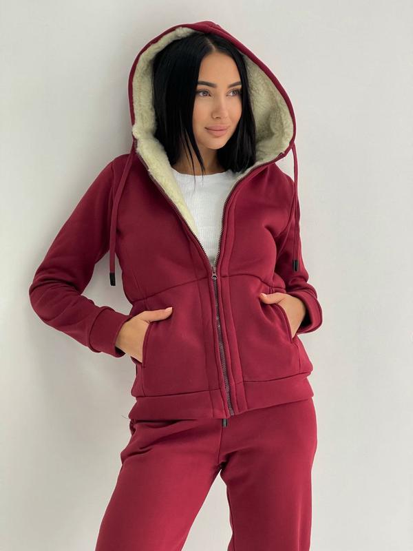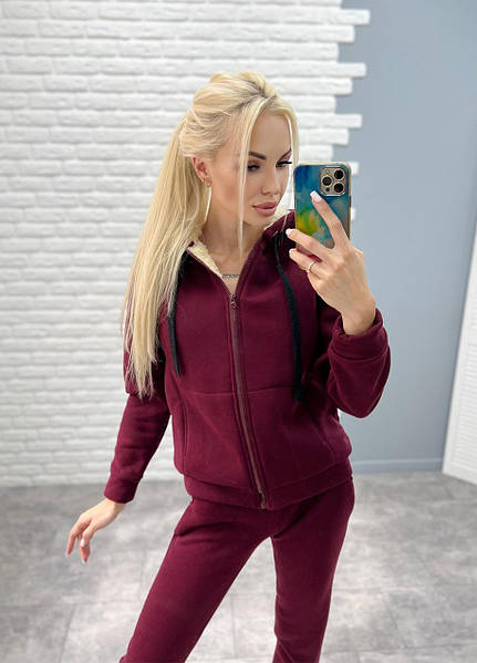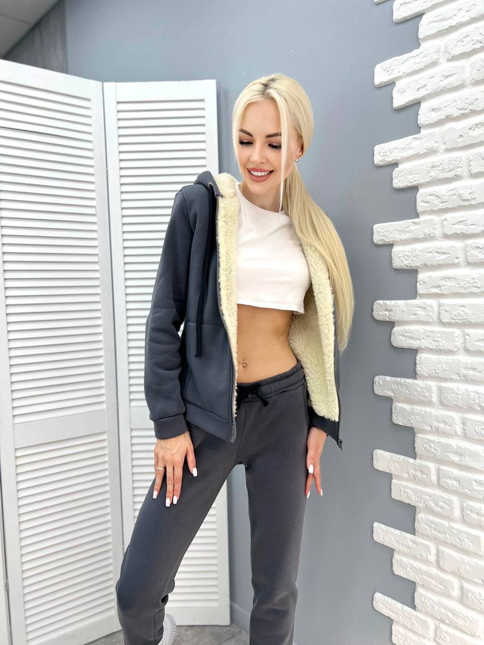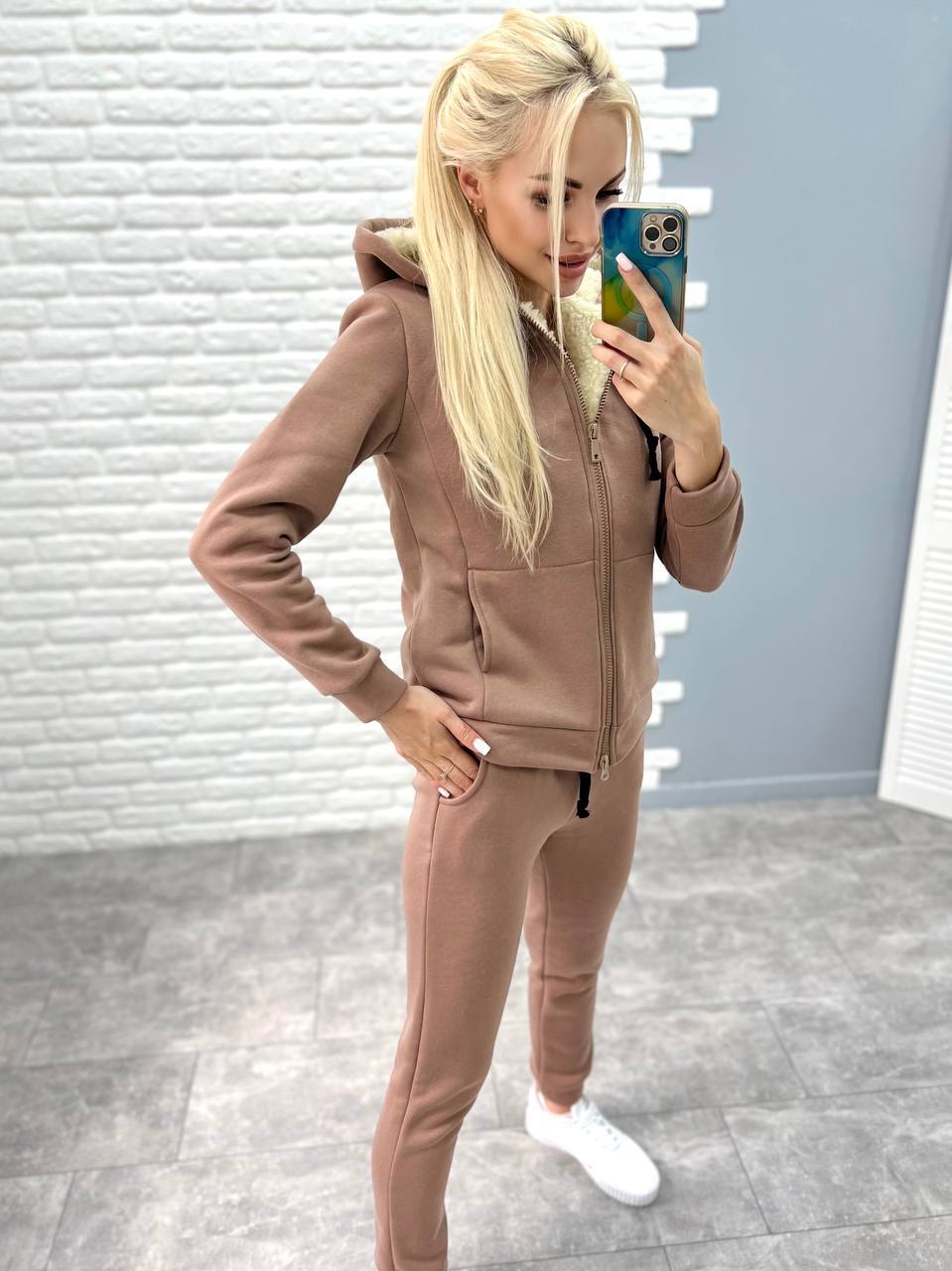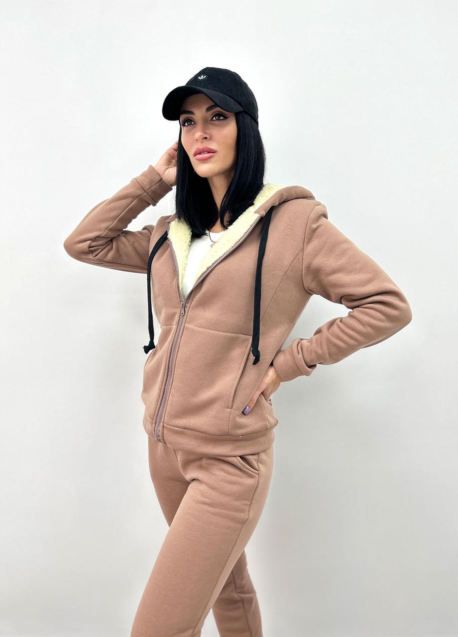 Теплий комплект "Nord" від Fashion Girl складається з худі, утепленого штучним хутром, і спортивних штанів із трикотажу на флісі. Таке поєднання матеріалів надійно захистить від холоду та колючого вітру.
