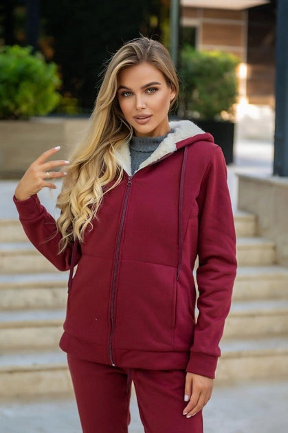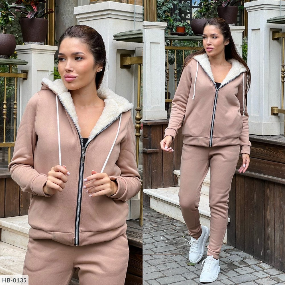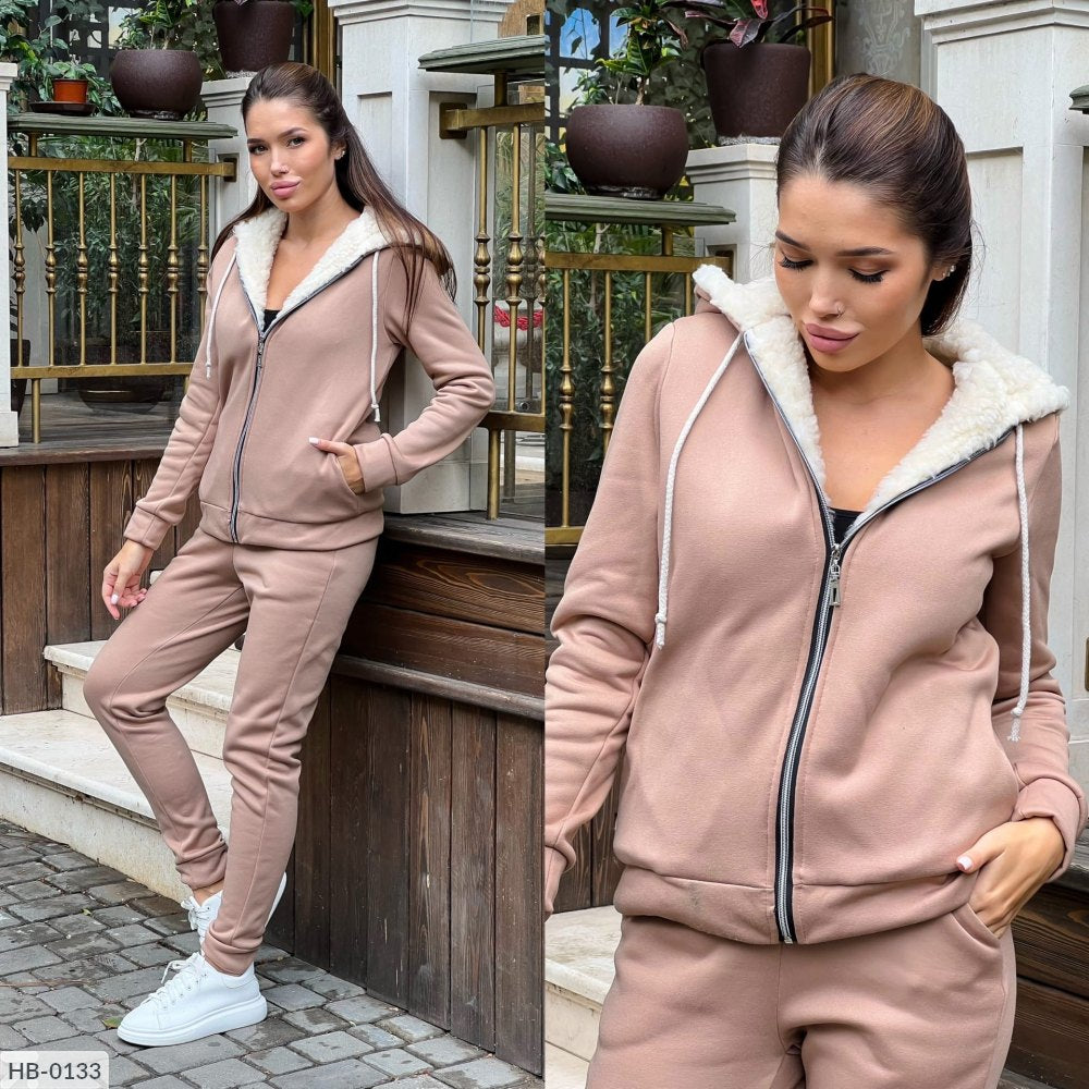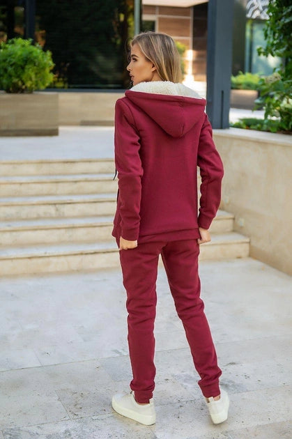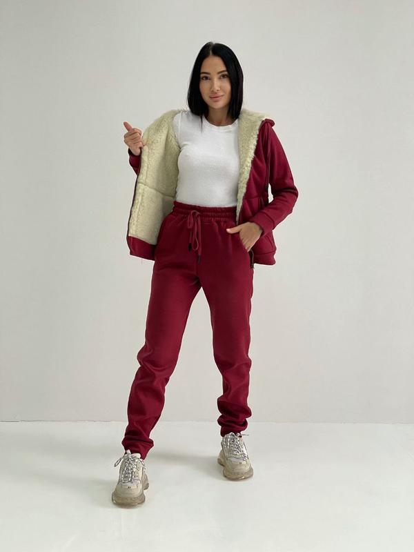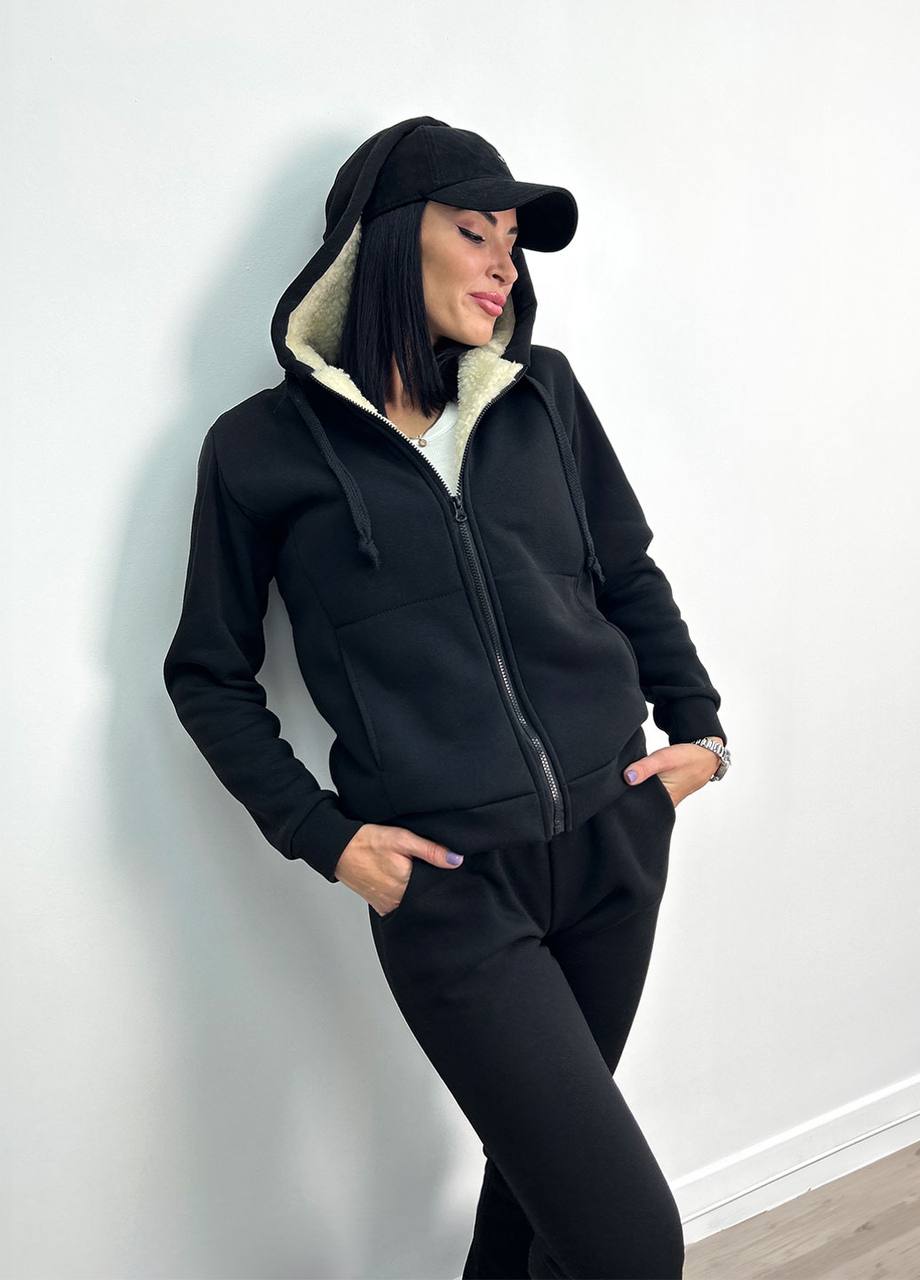 Теплий комплект "Nord" від Fashion Girl складається з худі, утепленого штучним хутром, і спортивних штанів із трикотажу на флісі. Таке поєднання матеріалів надійно захистить від холоду та колючого вітру.