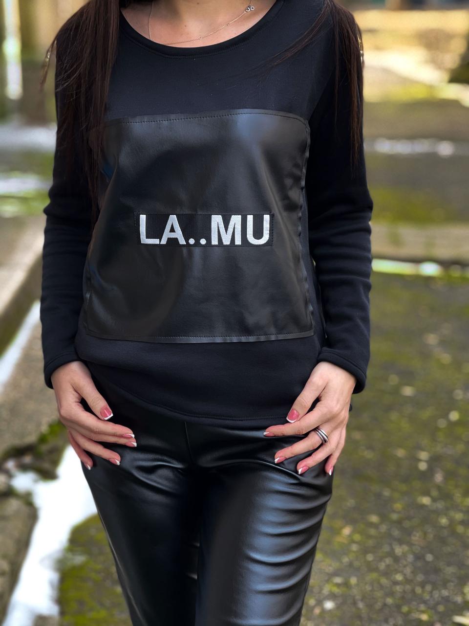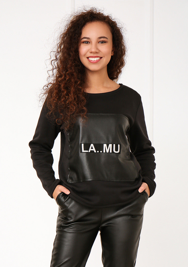- - спереду квадратна нашивка з матової екошкіри та декоративної стрічки з написом білого кольору.